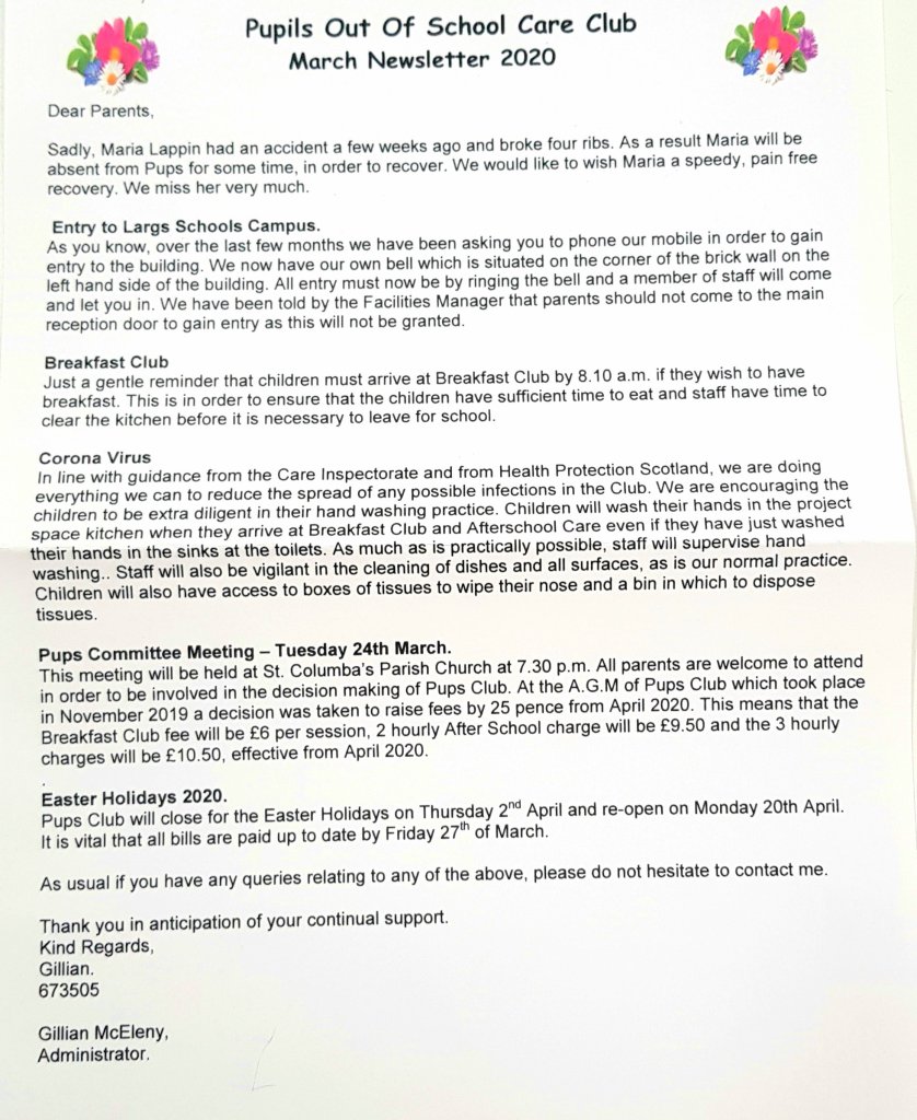 * Please note that this newsletter was issued prior to 16/3/2020 and, as such, face to face committee meetings may no longer take place. Please contact Gillian McEleny for more up-to-date information on 01475 673505.